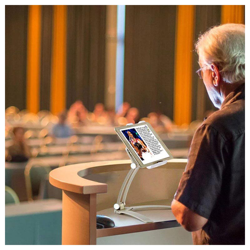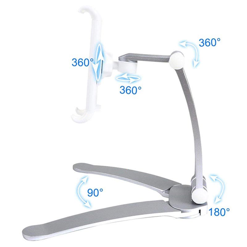 Un support de tablette universel et multifonctionnel qui peut être installé sur votre bureau ou fixé au mur grâce à sa base adhésive. Ce support est spécialement conçu pour maintenir en toute sécurité toute tablette d’une largeur entre 125mm et 190mm. SOn bras réglable avec une rotation à 360 degrés et la fonction de pliage à 180 degrés vous permet de placer votre tablette dans l'angle de vue idéal.