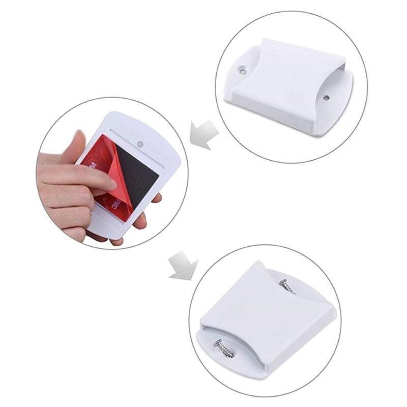 - Fixez le support mural avec l'autocollant intégré 3M ou vissez-le à l'aide des vis fournies