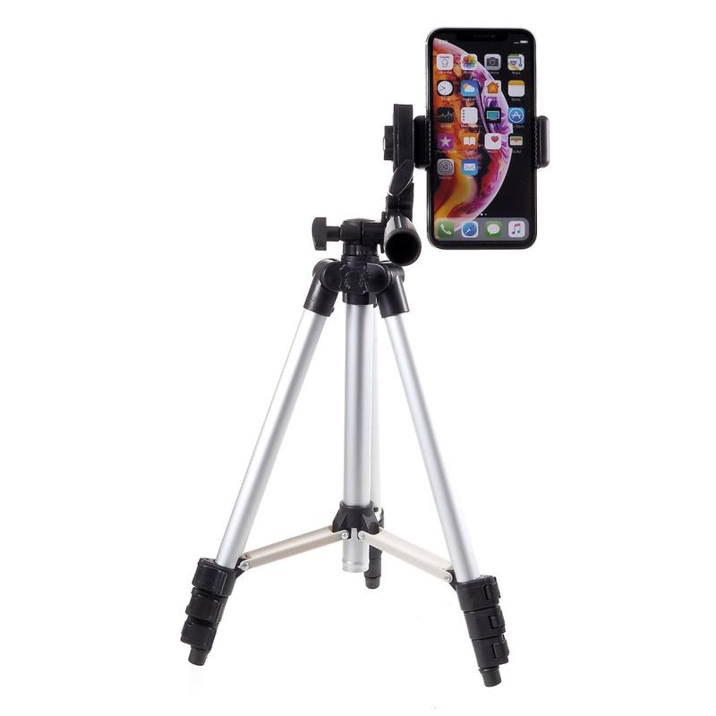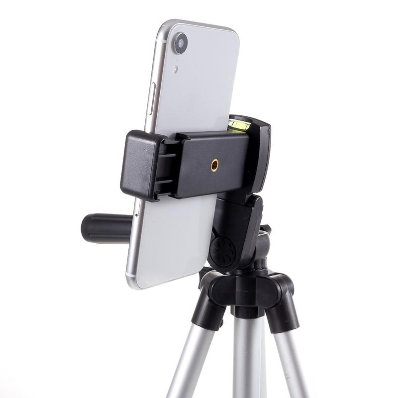 3110 Trépied réglable en aluminium avec pince pour téléphone - Support 57-83mm, hauteur 1020mm