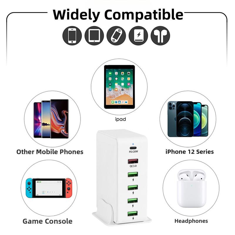 Avec un port PD, un port QC3.0 et quatre sorties USB-A supplémentaires, vous pouvez charger plusieurs appareils simultanément, ce qui est idéal pour les postes de travail, les familles ou les voyageurs qui transportent plusieurs gadgets.