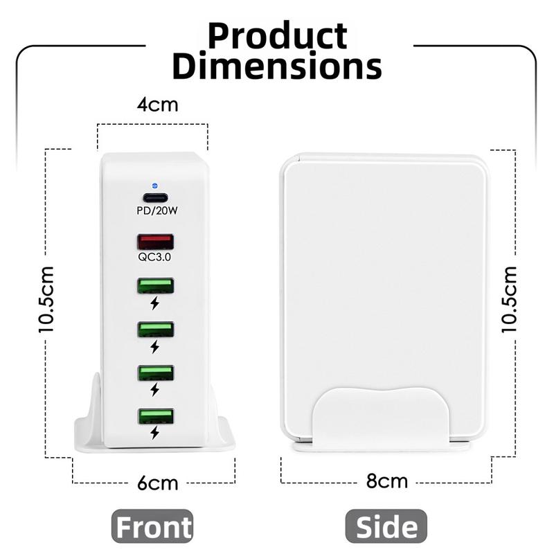 Chargez plus intelligemment avec la station de charge multiport 818PD, conçue pour offrir des performances fiables et rapides à tous vos appareils. Prenant en charge les protocoles de charge rapide PD20W et QC3.0, ce hub de charge compact garantit que votre smartphone, votre tablette ou vos accessoires sont alimentés rapidement et en toute sécurité, où que vous soyez.