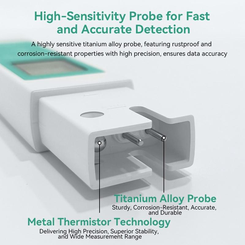 Associant des tests de haute précision, une interface emoji intelligente, une sonde en titane durable et un design portable, le testeur de qualité de l'eau A13 est un outil fiable pour garantir la salubrité de l'eau potable, à tout moment et en tout lieu.