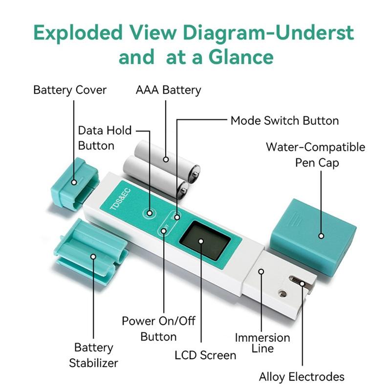 Compact, léger et facile à transporter, le testeur tient confortablement dans votre poche ou votre sac. Parfait pour la maison, les voyages, les aquariums, l'hydroponie, les tests de filtration, etc.