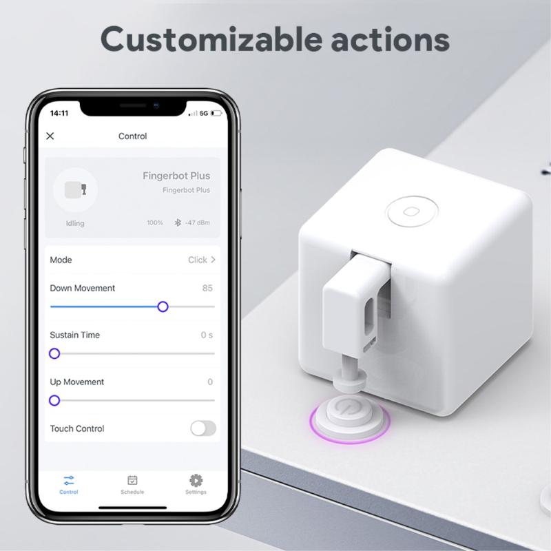 Le Fingerbot Plus peut automatiser pratiquement n'importe quel appareil doté d'un bouton physique - des machines à café aux climatiseurs, en passant par les interrupteurs muraux et les appareils électroniques de bureau. Son moteur de précision et sa distance de poussée personnalisable lui permettent de s'adapter à d'innombrables cas d'utilisation, comblant ainsi le fossé entre les appareils traditionnels et la technologie moderne de la maison intelligente.