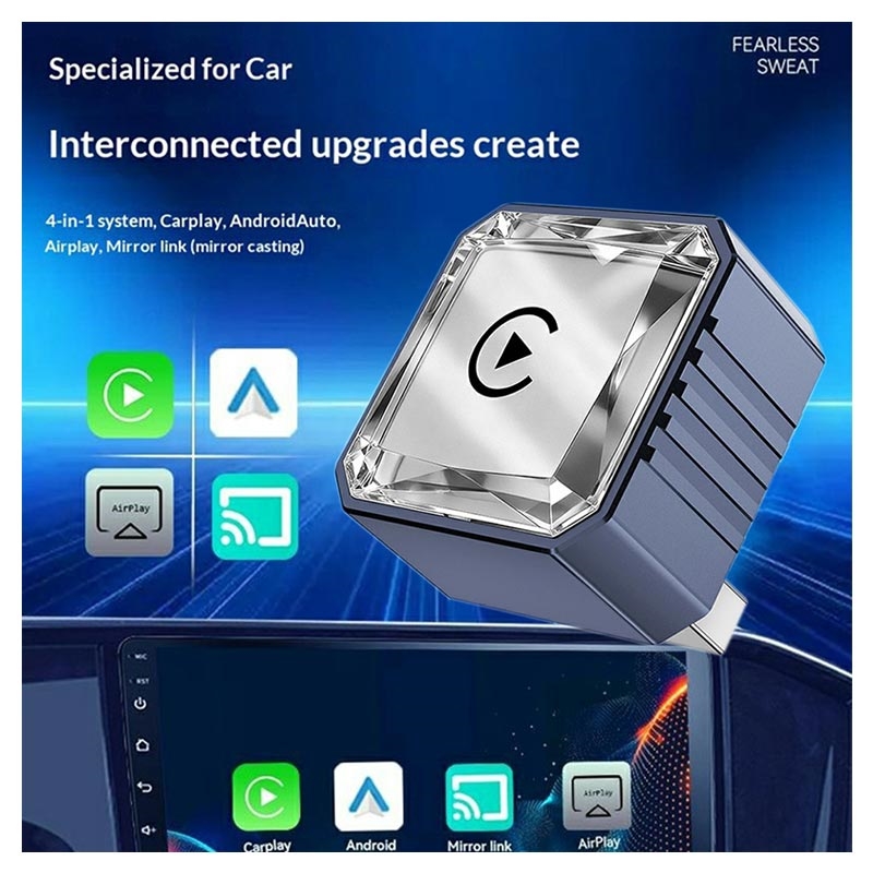 • Adaptateur CarPlay sans fil 4-en-1 Q1BVS en forme de losange / Boîtier intelligent compatible CarPlay, Android Auto, AirPlay et MirrorLink