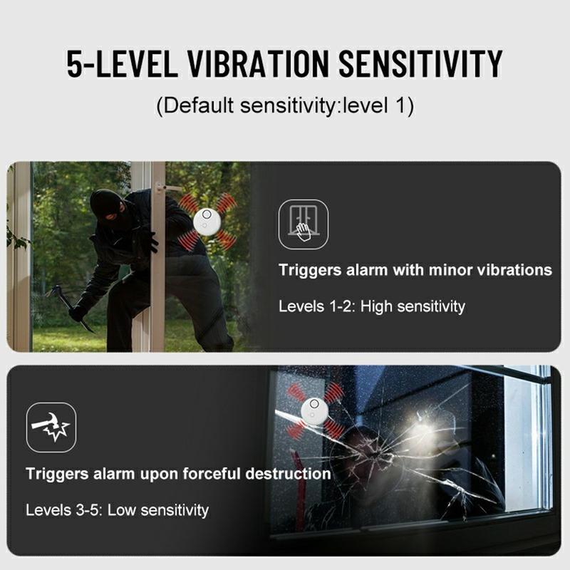 Sécurisez votre maison, votre bureau ou votre magasin avec cette alarme de porte et de fenêtre à haute sensibilité, conçue pour détecter les vibrations, les impacts ou les bris de verre. Avec une sirène réglable de 130dB, des niveaux de sensibilité personnalisables et une installation facile sans outil, elle constitue une solution de sécurité fiable et abordable contre les intrus.