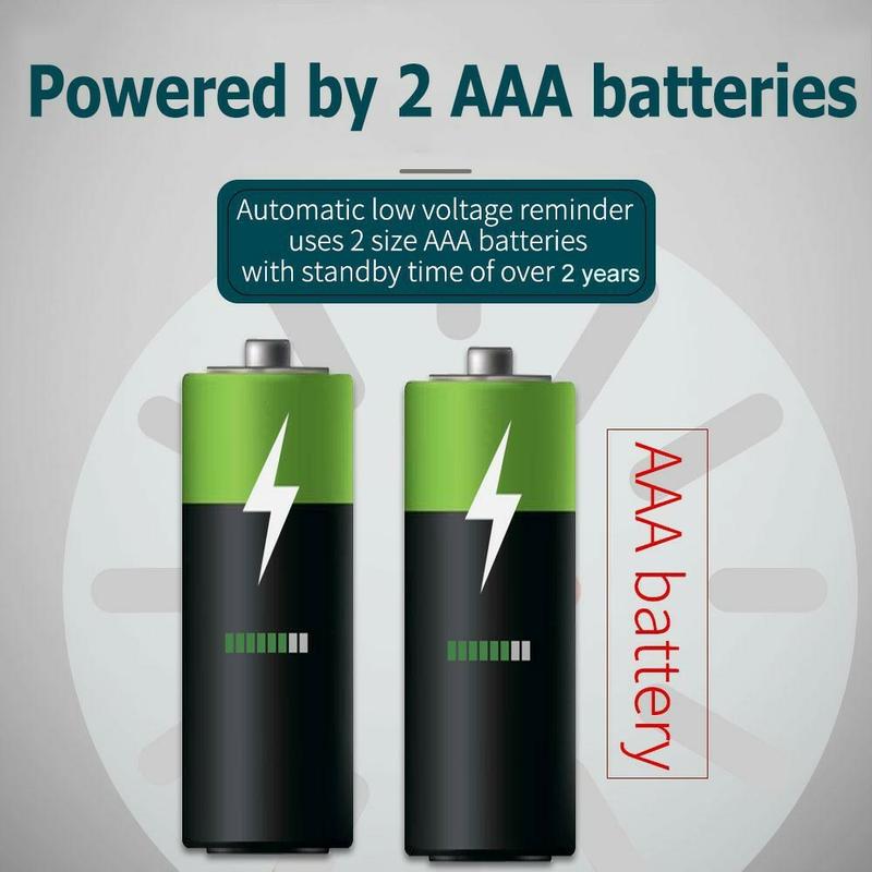 - Alimenté par des piles : Fonctionne avec 2 piles AAA (incluses), avec une longue durée de veille et un rappel de pile faible.