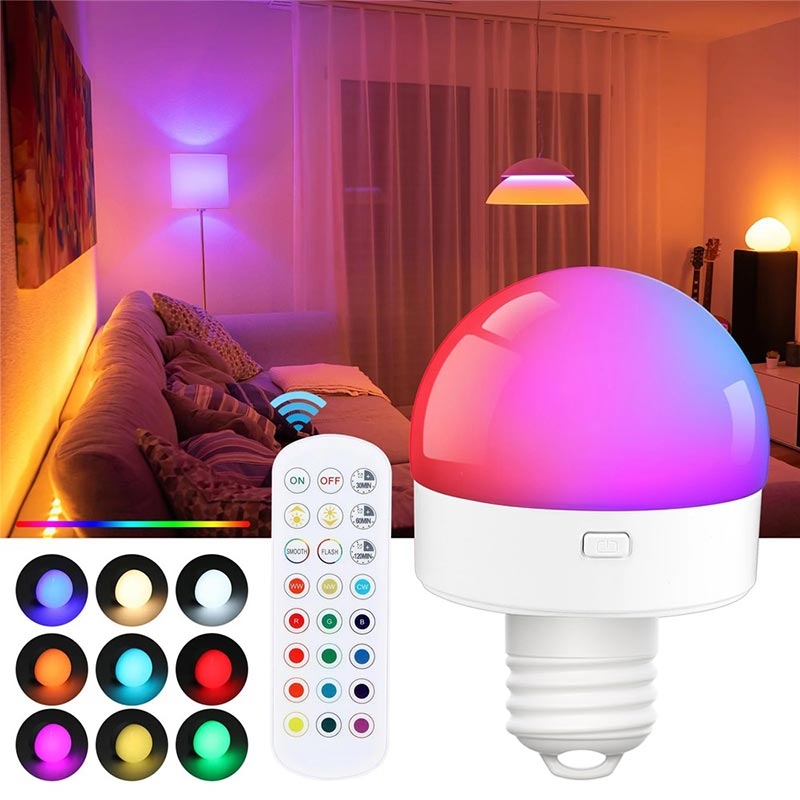 Ampoule rechargeable avec RGB et télécommande - E27 - 2 Pcs.
