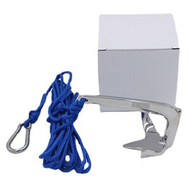 • Ancre Bruce en acier inoxydable 316 de 0,2 kg avec corde de 5m - Ancre compacte pour kayak, bateau pneumatique et petit bateau (crochet à ressort inclus)