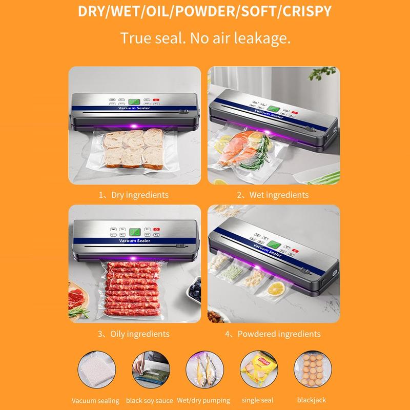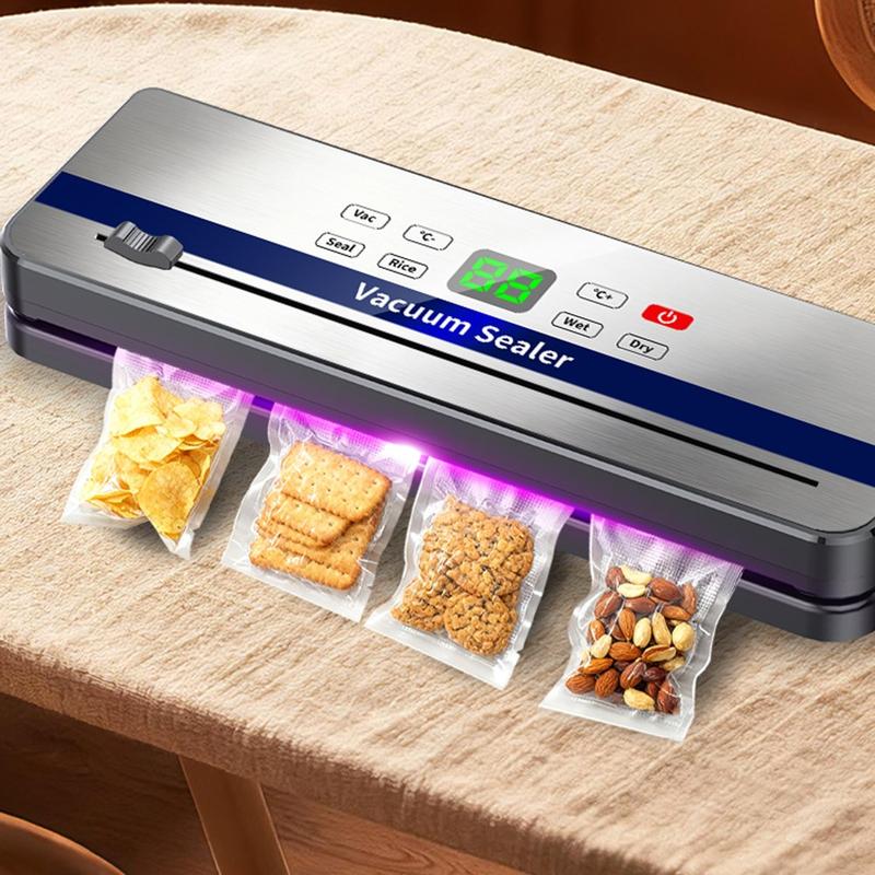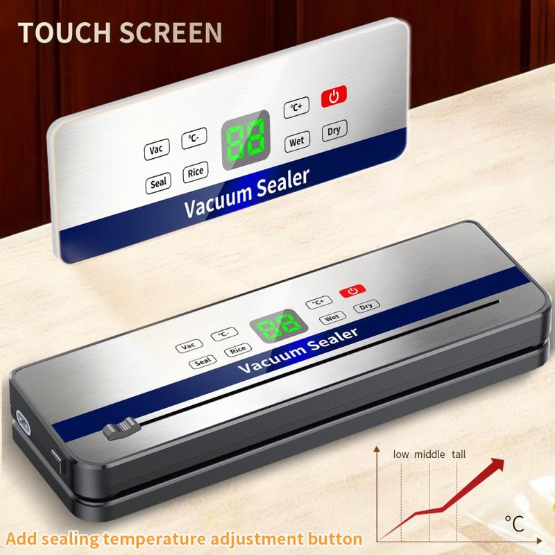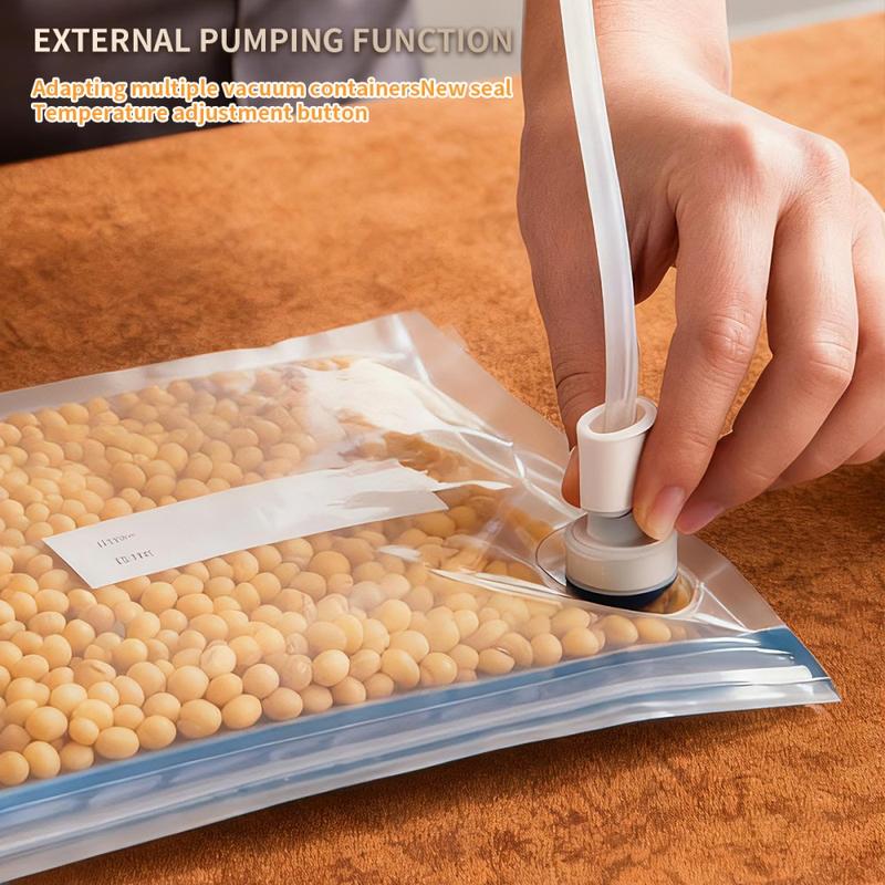 Cette machine à emballer sous vide prend en charge les modes sec et humide, vide + scellage, scellage seul et même pompage externe, ce qui vous permet de conserver tout type d'aliments, des snacks et grains de café aux viandes marinées et soupes (avec le sac approprié). Un écran tactile étanche et un contrôle de température réglable vous aident à adapter le scellage à différentes épaisseurs de sacs pour des résultats plus nets sans surchauffe. Le cutter coulissant intégré facilite le dimensionnement des sacs, et les composants amovibles permettent un nettoyage rapide après utilisation.