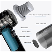 L'aspirateur de voiture sans fil 6000Pa est un outil de nettoyage puissant et portable conçu pour garder votre voiture, votre maison et votre bureau impeccables. Avec une aspiration haute performance de 120 W et une pression d'aspiration de 6000 Pa, il élimine efficacement la poussière, les miettes, les poils d'animaux, la suie et même les petites taches d'eau. Les têtes de brosse multifonctionnelles incluses permettent d'atteindre les espaces restreints, les sièges de voiture, les tapis de sol et les compartiments à bagages pour un nettoyage en profondeur. Léger et sans fil, il offre jusqu'à 30 minutes d'utilisation continue avec une charge complète, grâce à une batterie rechargeable de 2000mAh. Le grand godet à poussière de 0,5 litre permet de le vider moins souvent, tandis que le chargement par USB permet de l'alimenter à partir d'adaptateurs, de banques d'alimentation ou de chargeurs de voiture.