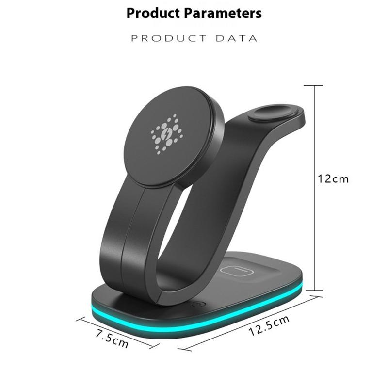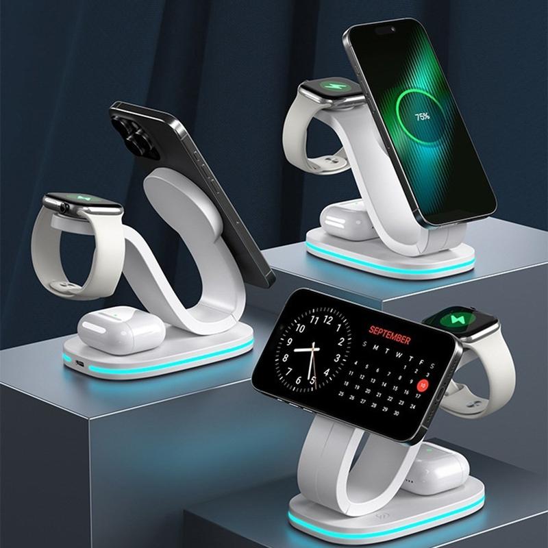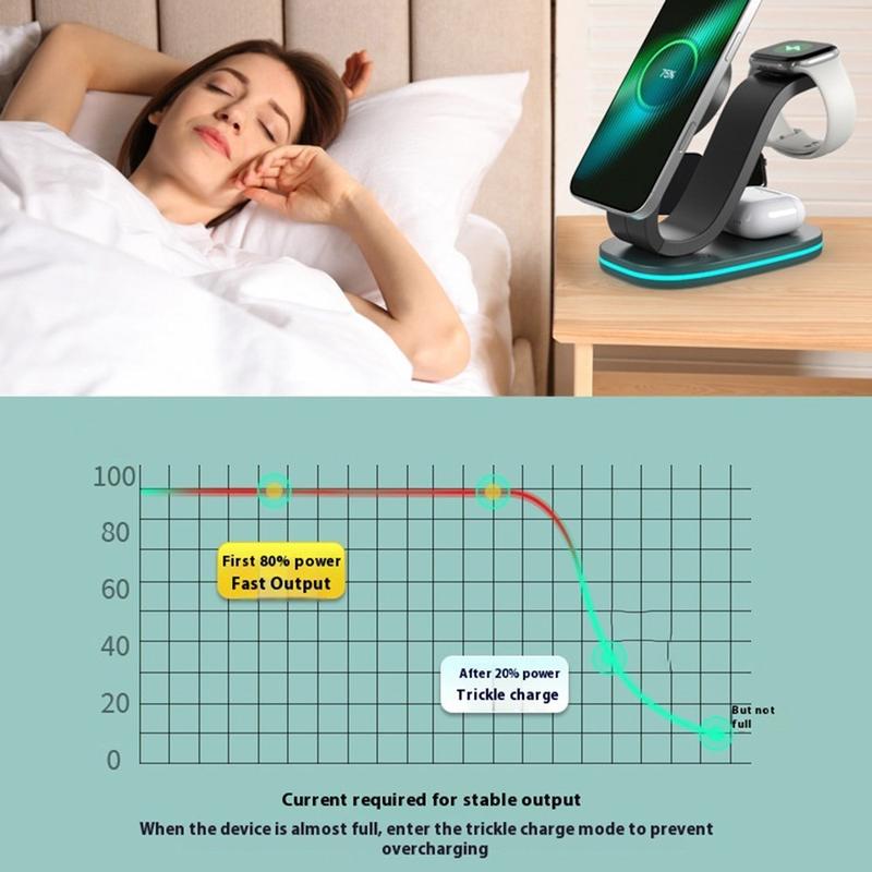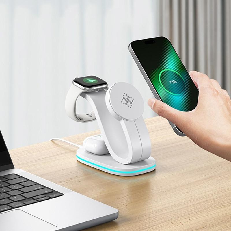 • B-28 Chargeur sans fil 3-en-1 avec veilleuse - alimente téléphone, montre et écouteurs en un seul endroit