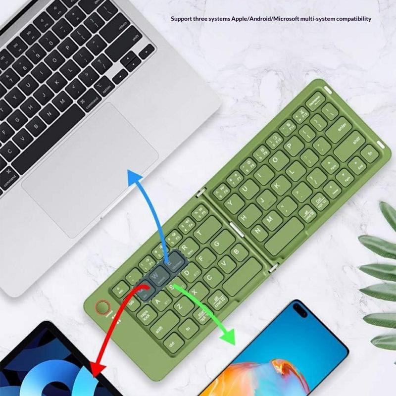 B023 Clavier sans fil magnétique pliable à 68 touches avec support pour téléphone - QWERTY - Vert