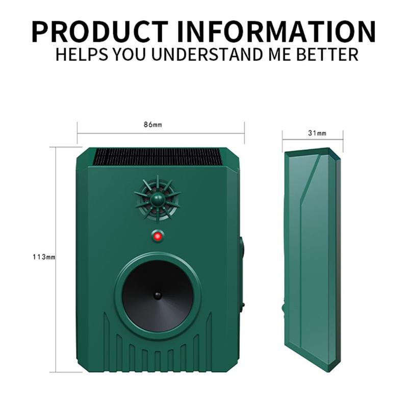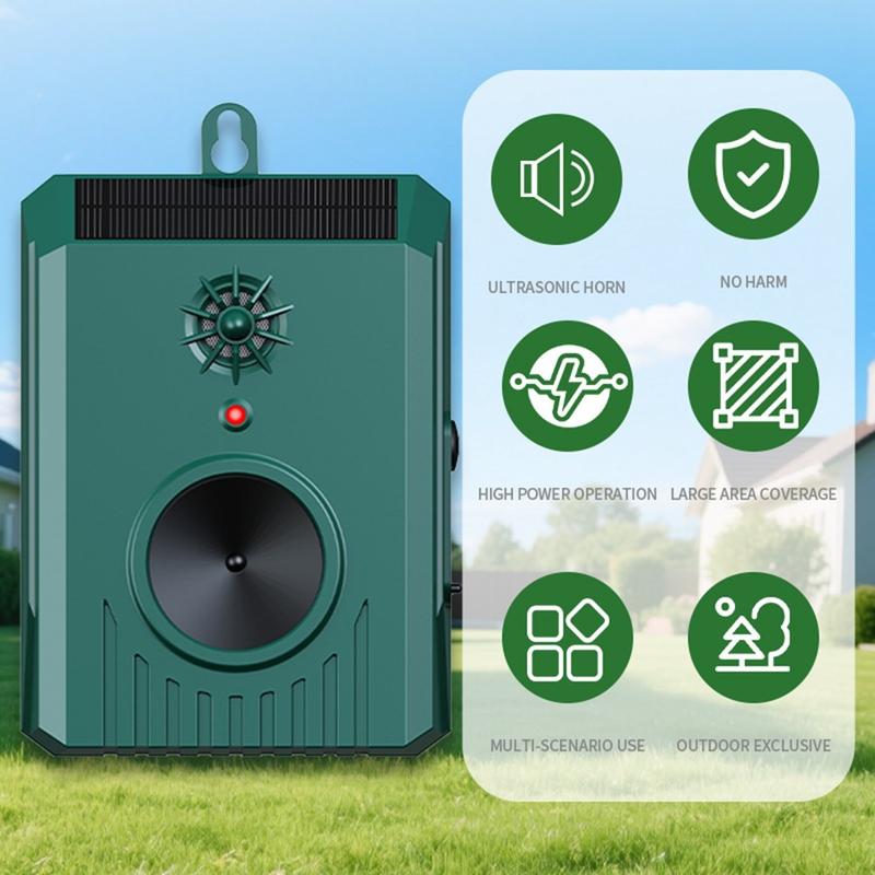 Cet appareil à ultrasons offre une alternative sans produits chimiques, sans odeur et sans danger pour les animaux domestiques aux pesticides nocifs, ce qui le rend adapté aux ménages, aux jardins et aux utilisateurs soucieux de l'environnement.