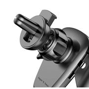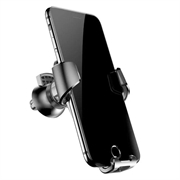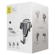 Support de téléphone gravitationnel Baseus, monté sur la grille d'aération de la voiture. La plage de réglage du support est de 360 degrés. Conçu pour les téléphones de 63 à 88 cm de large. Les pinces latérales du support s'adaptent automatiquement à la largeur du téléphone. Le rail découpé permet de brancher le chargeur.