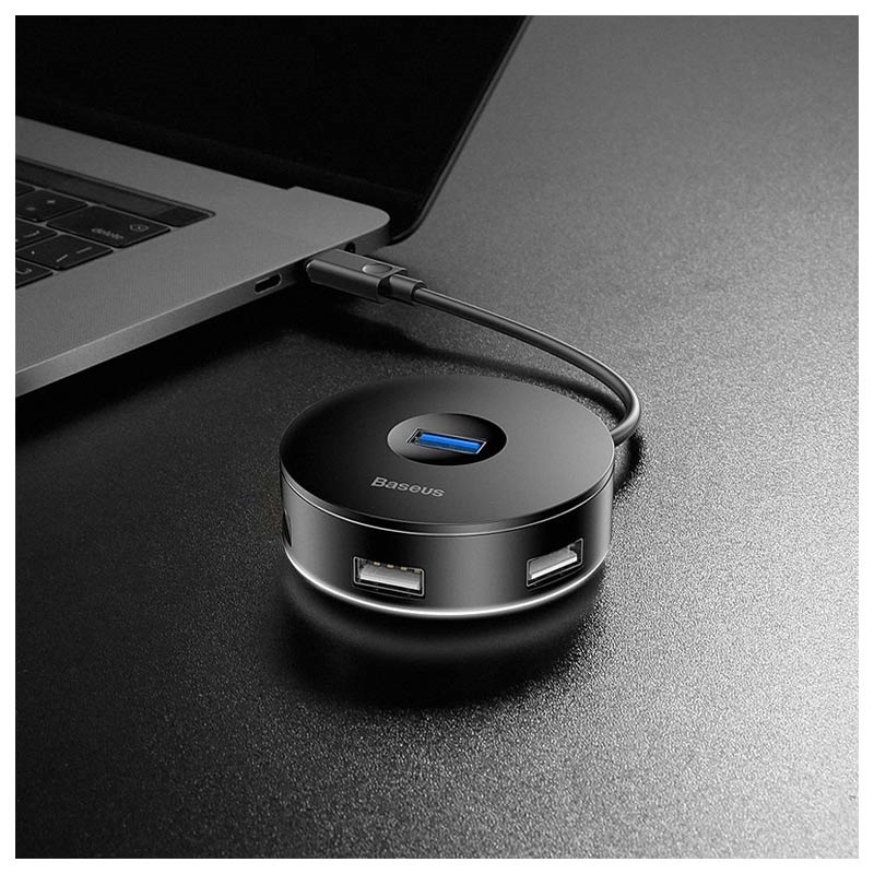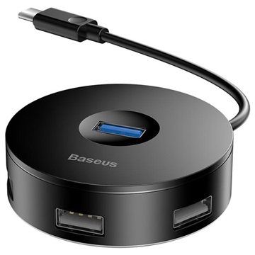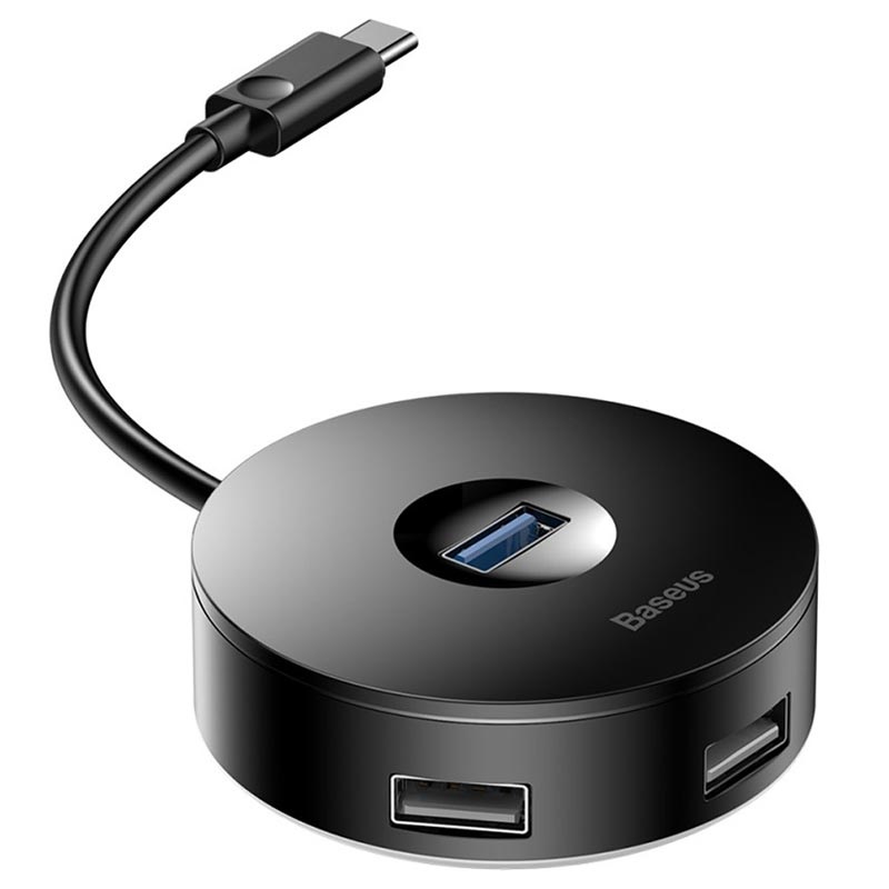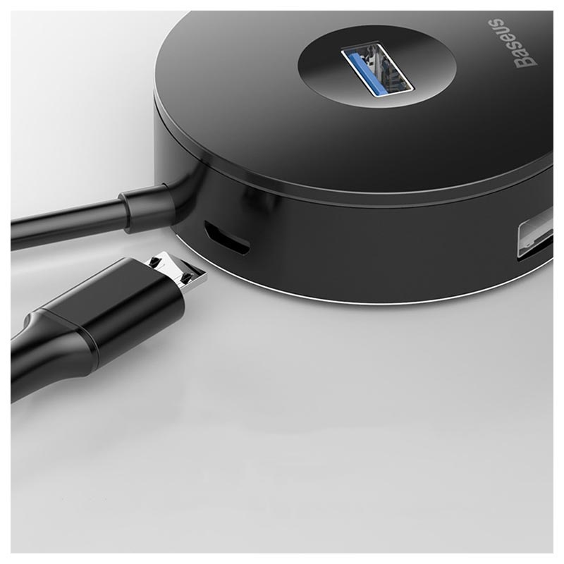 Adaptateur Hub USB 3.0 à 4 Ports Baseus Round Box avec Alimentation MicroUSB pour Disque Dur - 3 x USB 2.0, 1 x USB 3.0