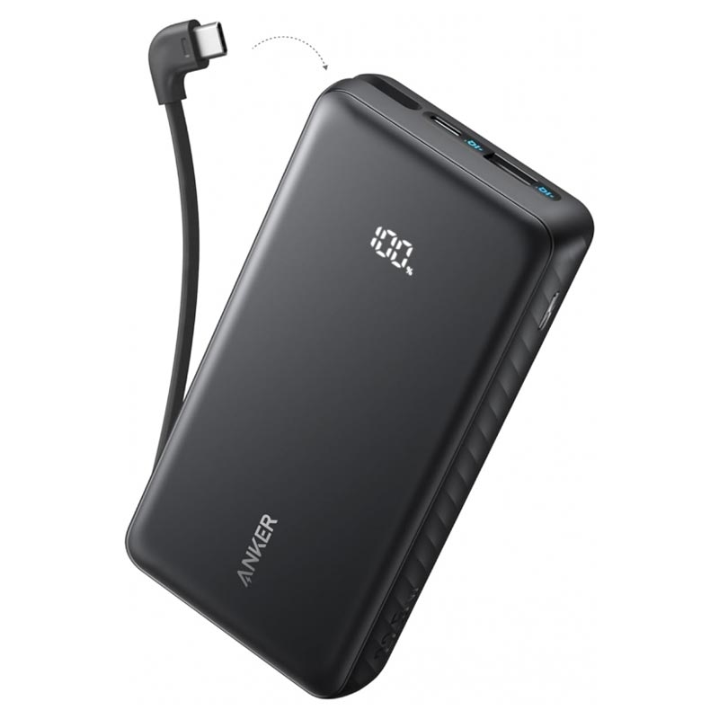 Batterie externe Anker Zolo 10000mAh - Chargeur portable 22.5W avec câble USB-C intégré, recharge rapide QC et PD
