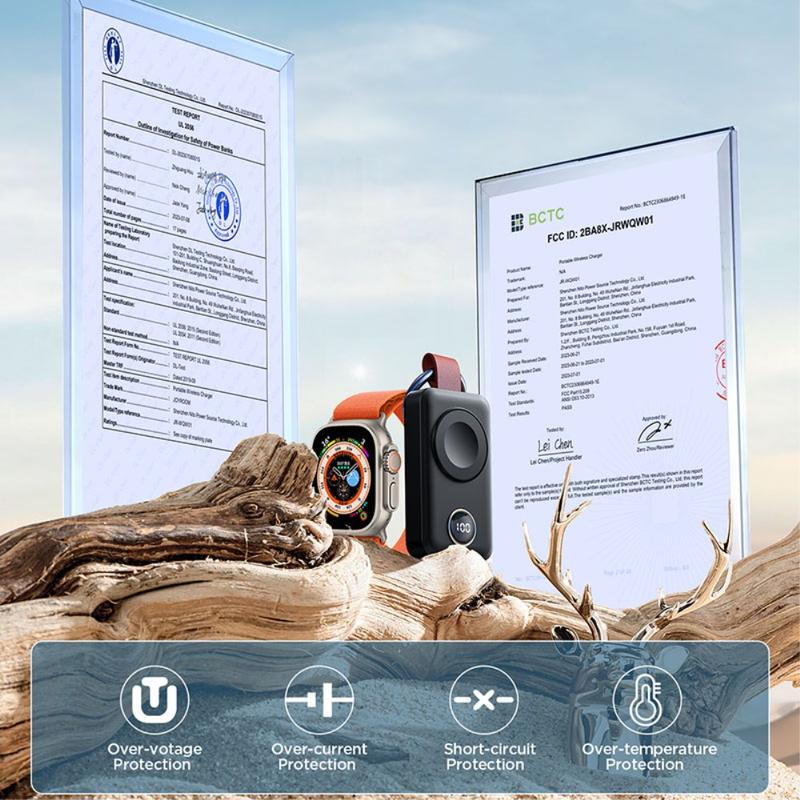 La JR-WQW01 est une solution pratique si vous souhaitez recharger votre Apple Watch de manière portable sans avoir à dépendre d'une prise murale. Son format compact en porte-clés, son écran clair et sa recharge automatique la rendent facile à utiliser partout. Grâce à sa protection de sécurité intégrée, elle constitue une solution de secours fiable au quotidien pour les utilisateurs d'Apple Watch.