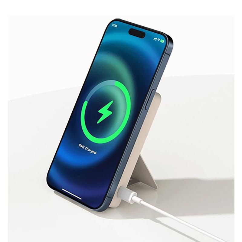 Malgré sa légèreté et sa taille compacte, la capacité de 6000mAh offre une autonomie supplémentaire fiable pour les activités quotidiennes. Une béquille intégrée vous permet de placer votre téléphone à l'horizontale, ce qui est idéal pour regarder des vidéos, naviguer ou passer des appels vidéo tout en le rechargeant.