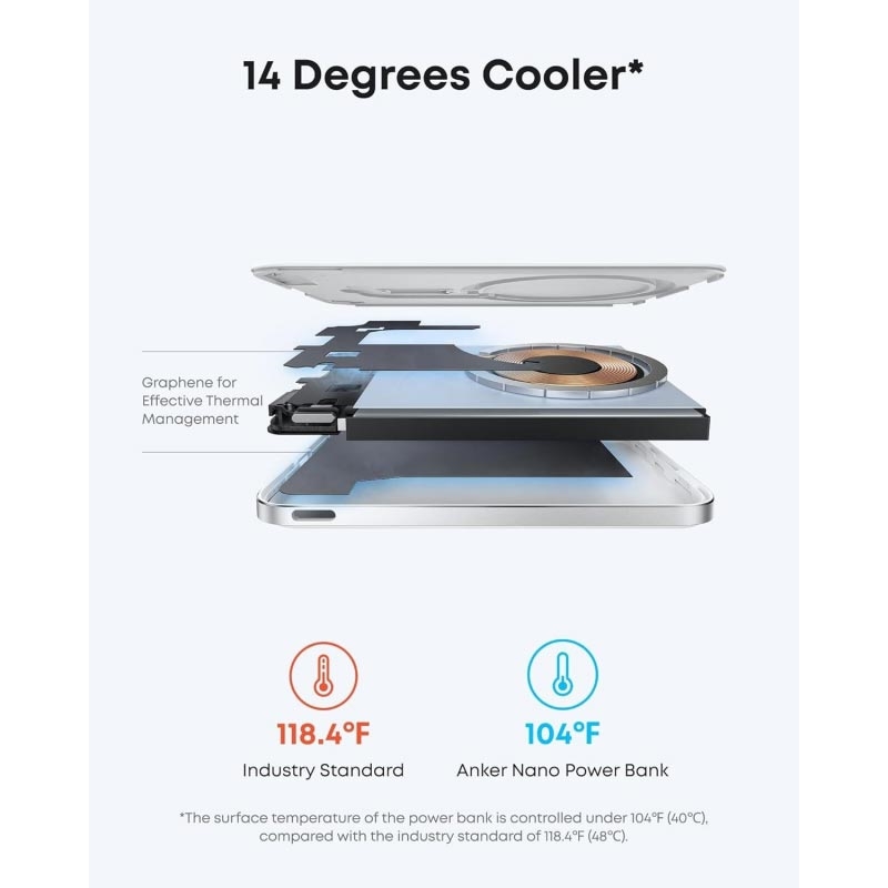 La batterie externe Anker Nano Power Bank est conçue pour les utilisateurs qui souhaitent un chargement rapide et sûr sans avoir à transporter une batterie externe encombrante. Sa fixation magnétique permet un chargement simple et sans câble, tandis que le port USB-C offre une plus grande flexibilité lorsqu'un chargement filaire plus rapide est nécessaire. Dotée de fonctions avancées de refroidissement et de sécurité, elle offre des performances fiables dans un design compact et haut de gamme.