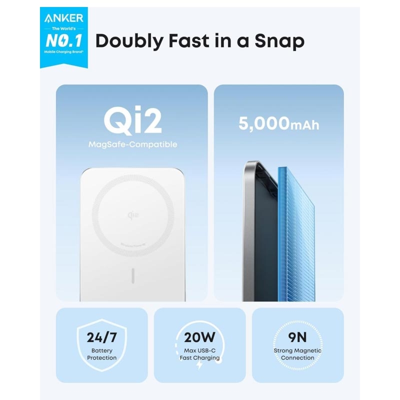 La batterie externe magnétique Anker Nano est une solution de recharge fine et légère conçue pour les smartphones modernes. Compatible avec la recharge magnétique Qi2 et dotée d'un boîtier compact, elle se fixe solidement à votre téléphone et vous offre une alimentation fiable lors de vos déplacements. Combinant une recharge sans fil rapide, une sortie filaire USB-C et des fonctions de sécurité avancées, elle est idéale pour une utilisation quotidienne, les trajets quotidiens et les voyages lorsque vous avez besoin d'une batterie supplémentaire sans encombrement supplémentaire.