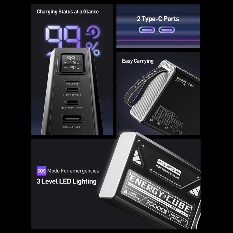 Le MOVESPEED YSPBZ70Pro-100 offre une puissance de charge de niveau ordinateur portable et une capacité exceptionnelle sous une forme portable. Avec sa technologie avancée de charge rapide, sa gestion intelligente de l'alimentation et son écran LCD, il s'agit de la solution d'alimentation tout-en-un ultime pour les utilisateurs exigeants.