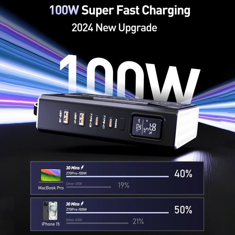 - Sortie de charge rapide de 100 W - Prend en charge les protocoles de charge rapide PD 100 W et 22,5 W, offrant des vitesses de charge dignes d'un ordinateur portable pour plusieurs appareils simultanément.