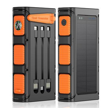 Batterie externe solaire à manivelle de 20000mAh avec recharge rapide PD 20 W, lampe torche LED et câbles intégrés