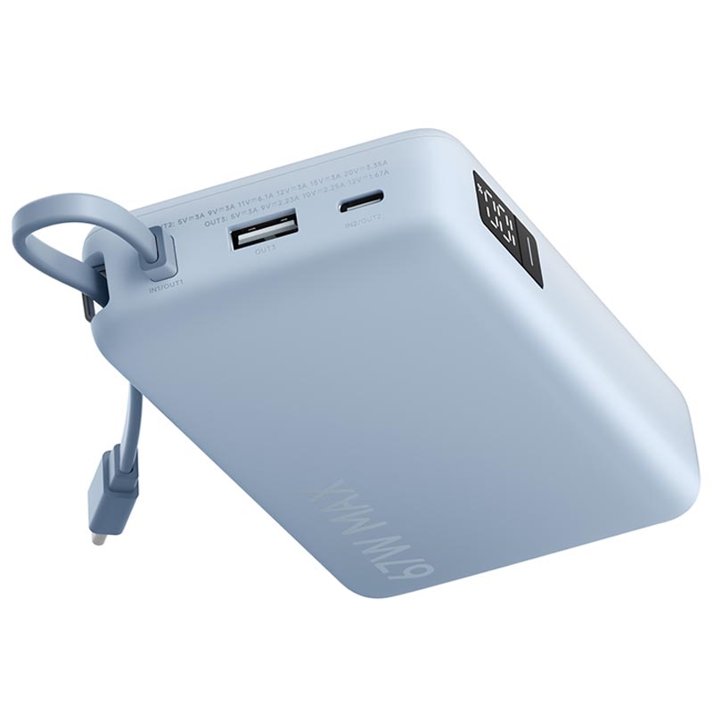 Cette batterie externe est idéale si vous recherchez une recharge rapide et un design adapté aux voyages. La puissance de sortie de 67W couvre plus que les téléphones, la recharge de 65 W réduit les temps d'arrêt et le câble USB-C intégré facilite le rangement et l'utilisation partout. Ajoutez à cela un écran numérique clair et une recharge multiport, et vous obtenez une solution d'alimentation fiable pour le travail, les voyages et le transport quotidien.