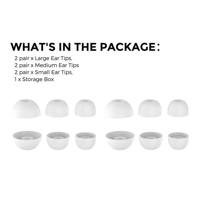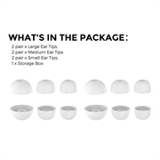 - Trois tailles (S / M / L) s'adaptent aux conduits auditifs de 10 mm à 14 mm, garantissant des sessions d'écoute plus longues sans points de pression.