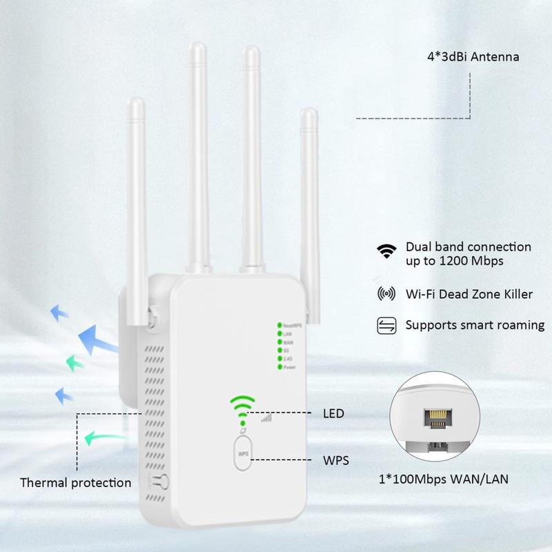 - Routeur et prolongateur WiFi bi-bande avec une vitesse allant jusqu'à 1200 Mbps