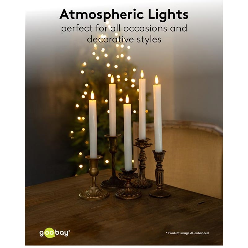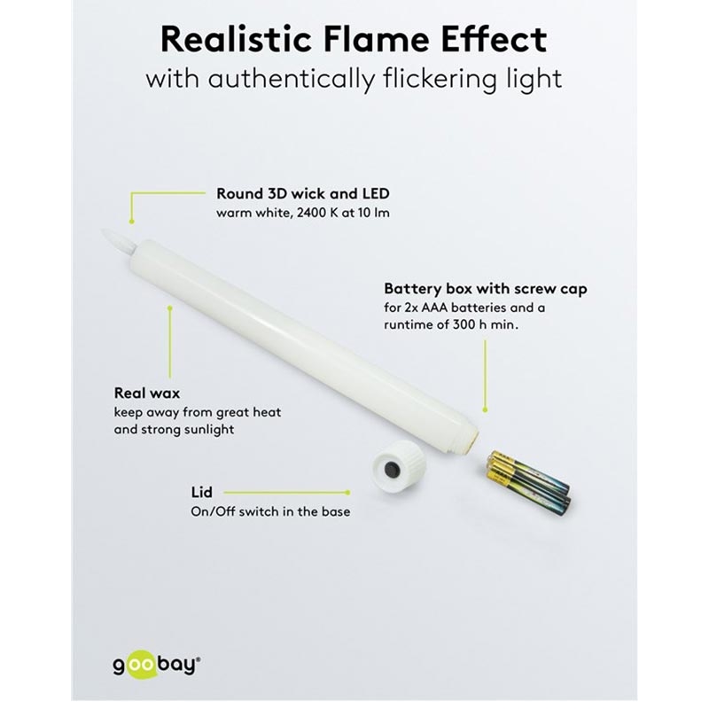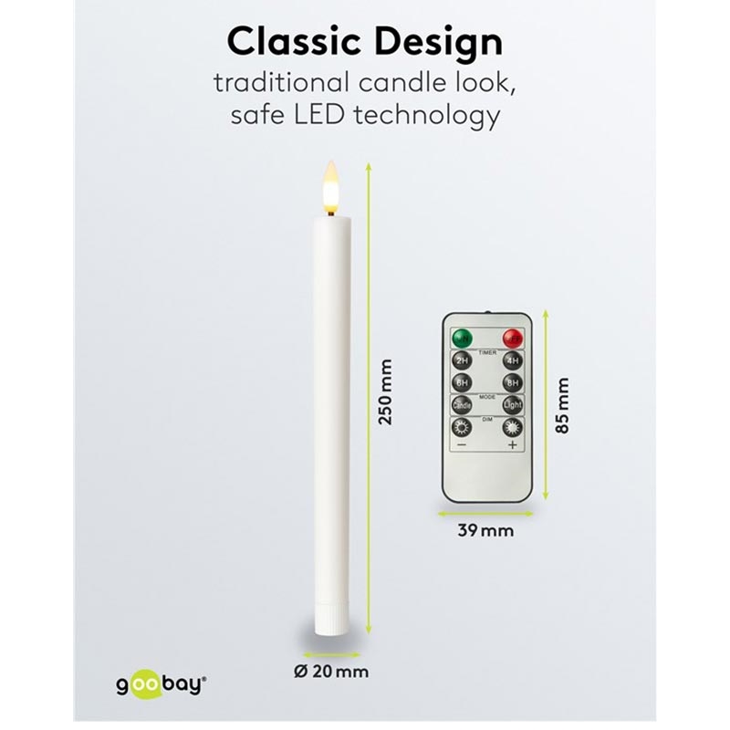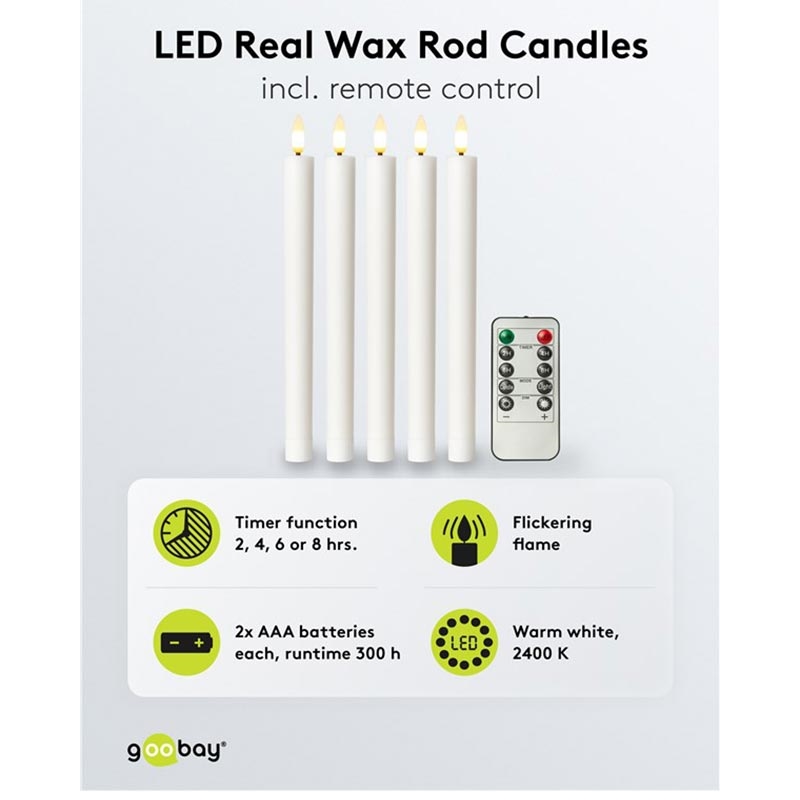 Bougies coniques Goobay en cire véritable avec télécommande et LED - 5 Pcs. - Blanc