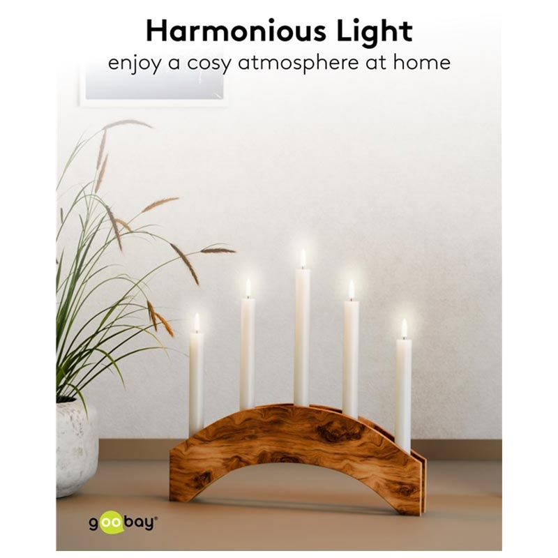 • Goobay Set de 5 bougies LED en cire véritable - flamme 3D, télécommande, minuteur, dimmable, blanc chaud 2400 K