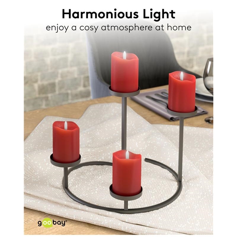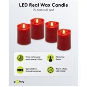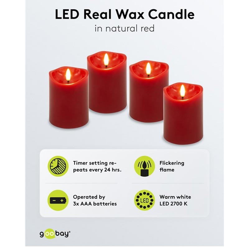Bougies LED Goobay en cire véritable avec mèche 3D et fonction minuterie - 4 Pcs. - Rouge