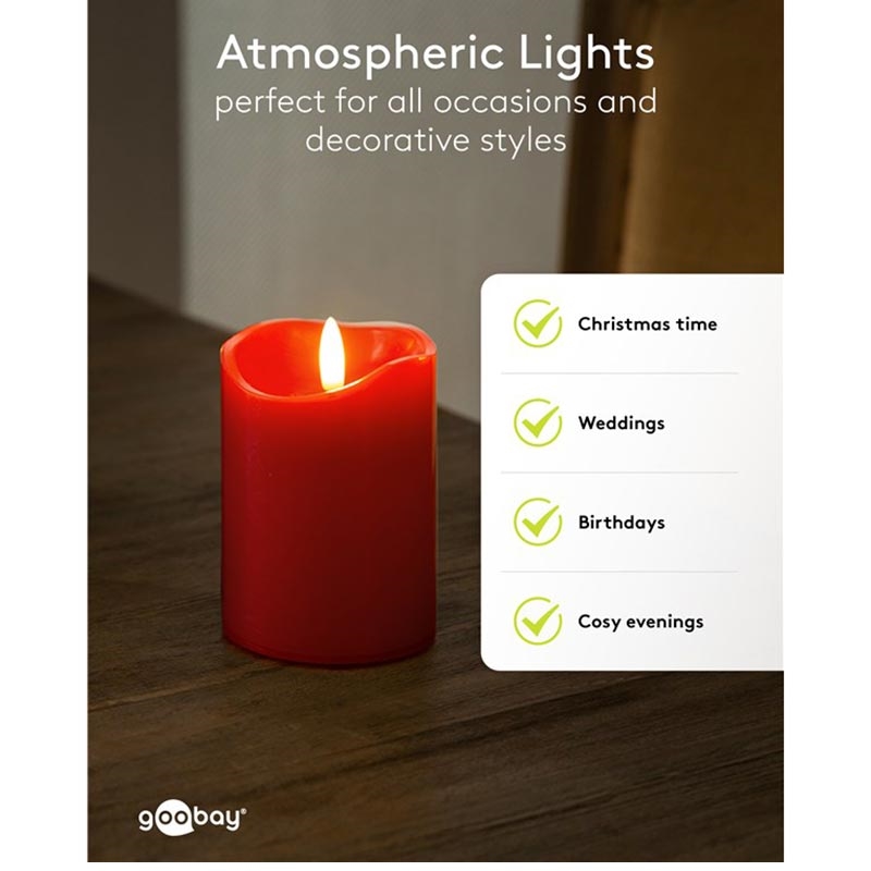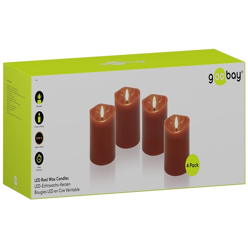 • Bougies LED Goobay en cire véritable - Flamme 3D, fonction minuterie, blanc chaud 2700 K, fonctionne avec des piles
