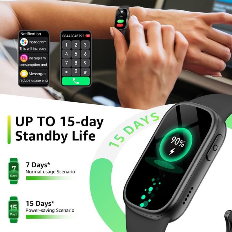 Restez connecté et suivez plus efficacement votre routine quotidienne grâce au tracker d'activité B7. Conçue pour faciliter votre quotidien, cette montre connectée fine et pratique combine appels Bluetooth, suivi de santé, suivi sportif et notifications intelligentes dans un seul appareil compact. Son écran HD de 1,47 pouces offre un affichage clair et lisible, ce qui en fait un compagnon utile pour le travail, le sport et la vie de tous les jours.