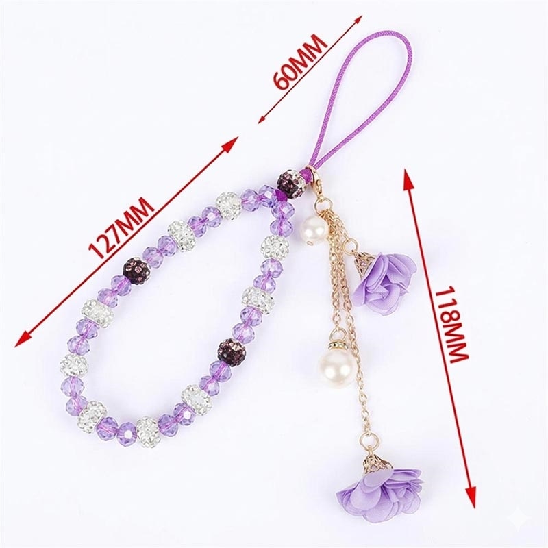 Apportez une touche d'élégance à votre téléphone grâce à cette lanière de 18,7 cm ornée de perles en cristal. Conçue à la fois comme accessoire décoratif et comme dragonne pratique, elle associe des perles style cristal, des détails métalliques effet strass, des breloques en forme de rose et un pendentif en fausse perle pour un look raffiné au quotidien.