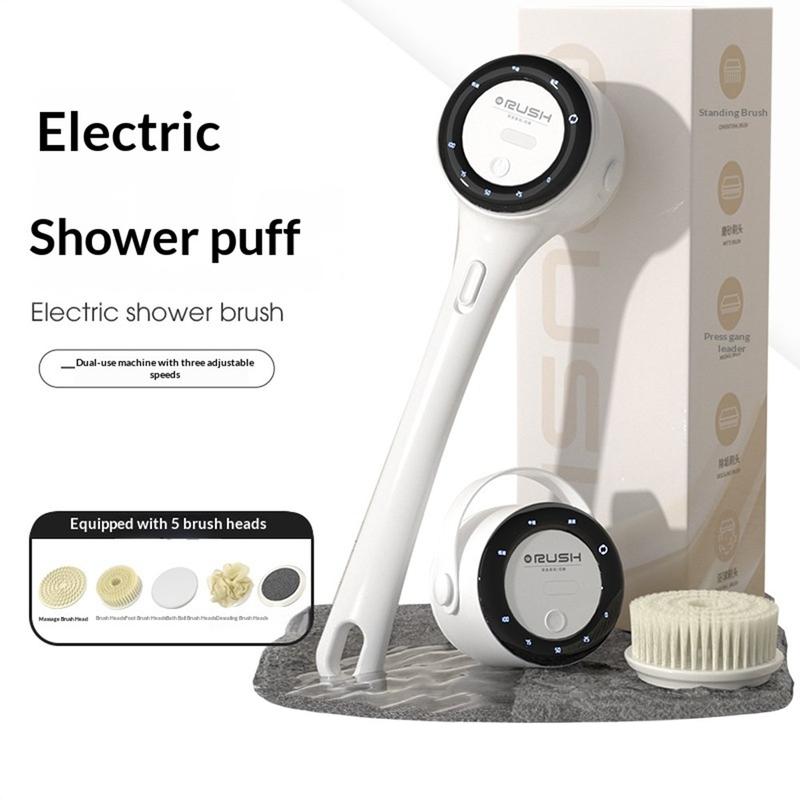 • Brosse de douche électrique A8 avec écran LED - Brosse dorsale à manche long et 3 vitesses, avec 5 têtes de brosse