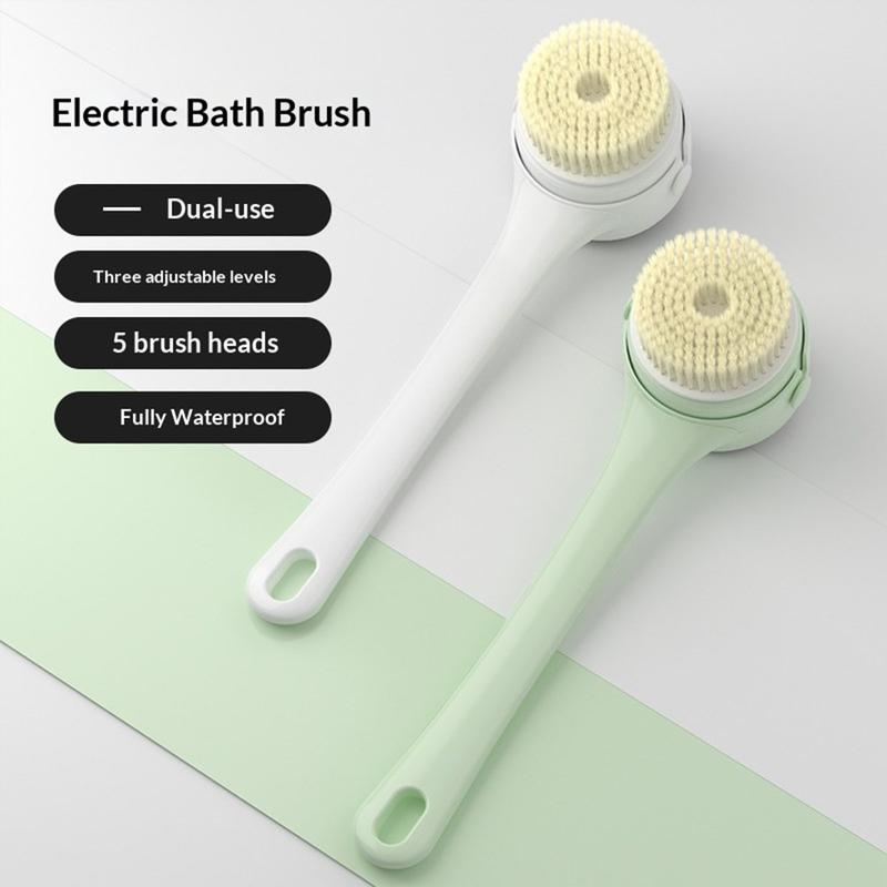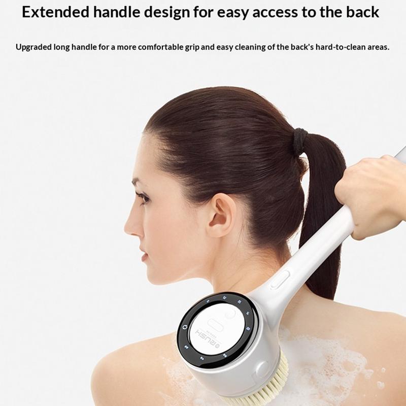 - Brosse de douche électrique avec long manche pour faciliter le nettoyage de tout le corps
