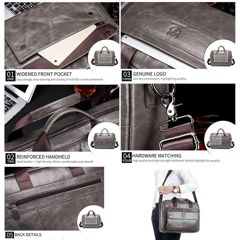 La mallette en cuir pour homme BULLCAPTAIN 046 est conçue pour les professionnels qui ont besoin d'un moyen fiable et élégant de transporter leurs affaires professionnelles. Fabriqué en cuir de vachette de première qualité, il offre une apparence raffinée combinée à une durabilité pour un usage quotidien. La disposition intelligente des poches permet d'accéder rapidement aux objets fréquemment utilisés tout en gardant les objets de valeur en sécurité. Grâce à ses multiples options de transport, ce sac s'adapte facilement à la vie de bureau, aux réunions et aux voyages d'affaires.