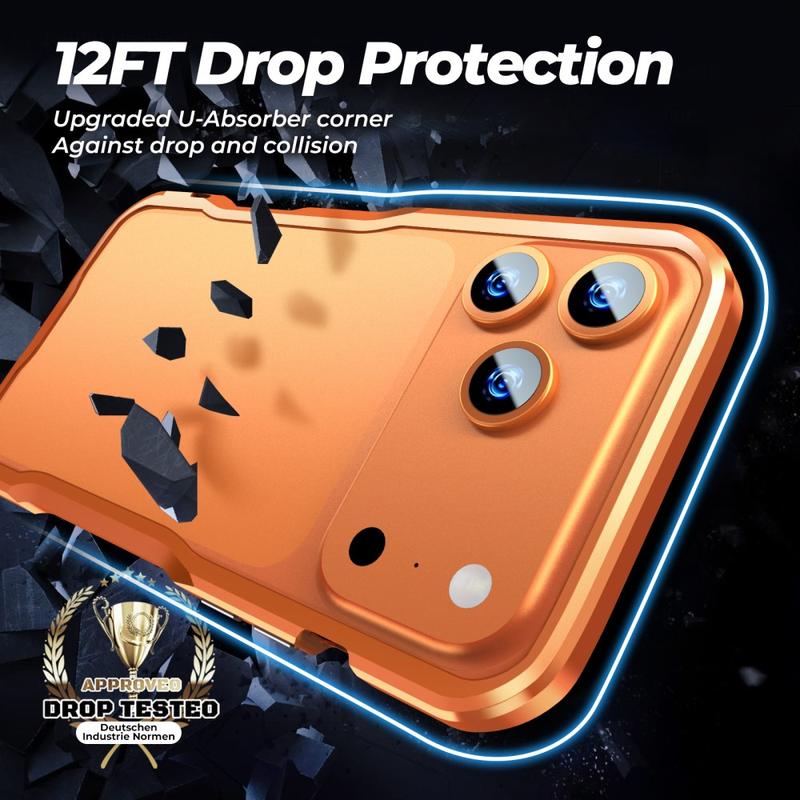 Bumper en Métal Luphie Safe Lock pour iPhone 17 Pro 6.7 inch Coque de téléphone antichoc avec cadre en métal résistant aux chutes et anti-collision