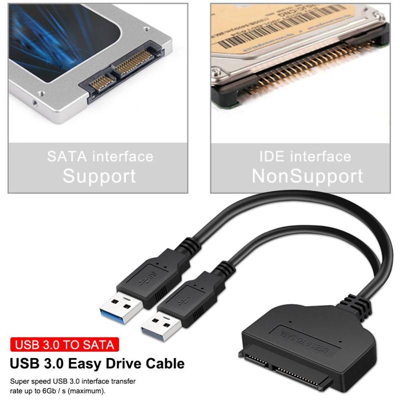 Câble adaptateur USB 3.0 à SATA haute vitesse pour disques durs et disques SSD de 2.5 pouces