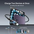 Si vous en avez assez de transporter plusieurs câbles, cette conception à double connecteur constitue une mise à niveau pratique. Vous bénéficiez d'une charge de 100 W pour les appareils USB-C haute puissance, d'un transfert de données fiable et d'une construction tressée mieux adaptée à une utilisation quotidienne, idéale pour la maison, le bureau et les voyages.