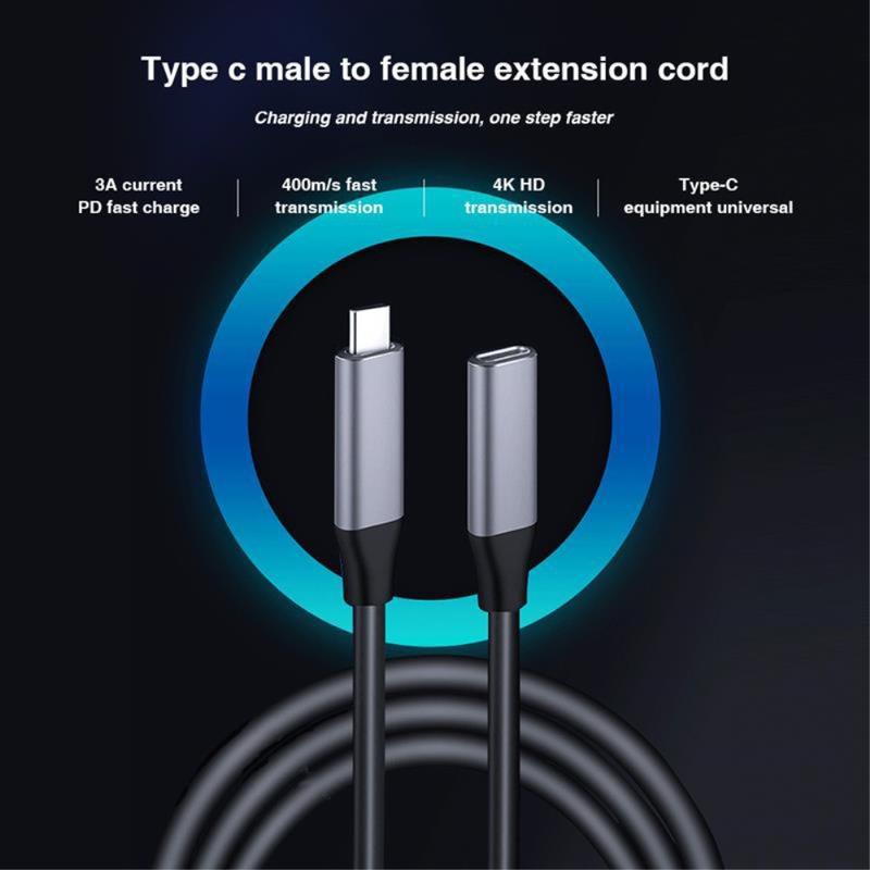 • Câble d'extension USB-C PD 60W - Type-C mâle vers femelle, 0,25 m, recharge rapide, synchronisation des données et sortie vidéo 4K