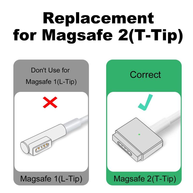 Ce câble USB-C vers Magsafe 2 T-Tip est équipé de puces PD et E-Mark qui adaptent intelligemment la tension et le courant pour un chargement sûr et efficace. Il prend en charge une puissance de 100W, ce qui le rend compatible avec une large gamme de modèles MacBook Pro. Chargement uniquement - le transfert de données et la sortie vidéo ne sont pas pris en charge.