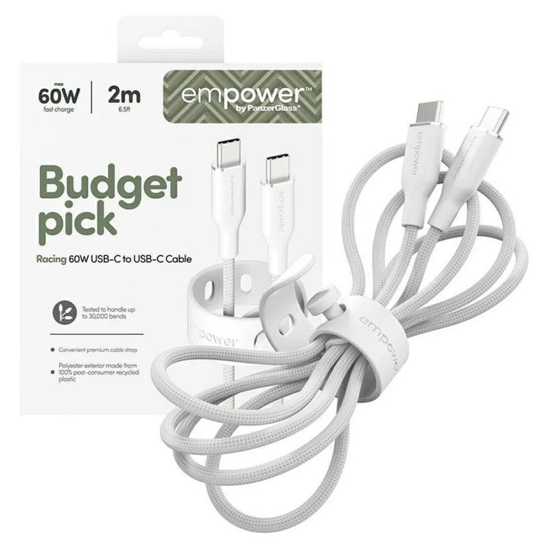 Câble USB-C Empower by PanzerGlass Racing - 60W, 2m - Blanc