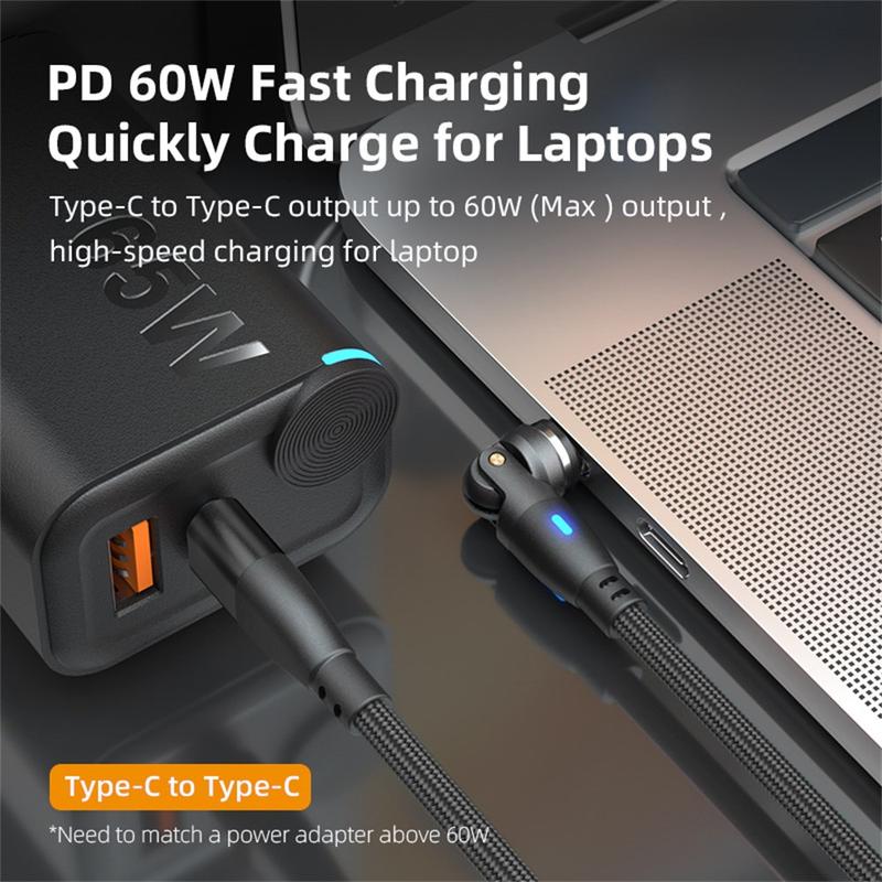 Avec une prise en charge de l'alimentation électrique jusqu'à 60 W, il convient non seulement aux téléphones, mais aussi aux tablettes et à de nombreux ordinateurs portables USB-C. La conception à 540 degrés de rotation (360 degrés de pivotement + 180 degrés de flexion) permet de tenir plus facilement votre appareil pendant le chargement et évite les tensions ou les enchevêtrements gênants du câble. Doté d'un boîtier en alliage d'aluminium et d'une gaine tressée en nylon durable, il est conçu pour résister à des flexions fréquentes et à une utilisation quotidienne.