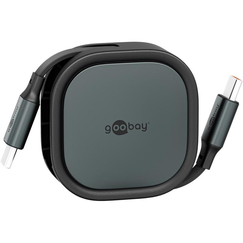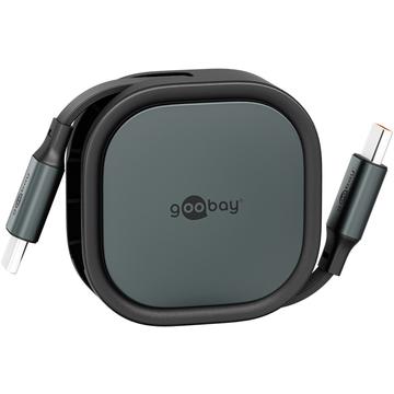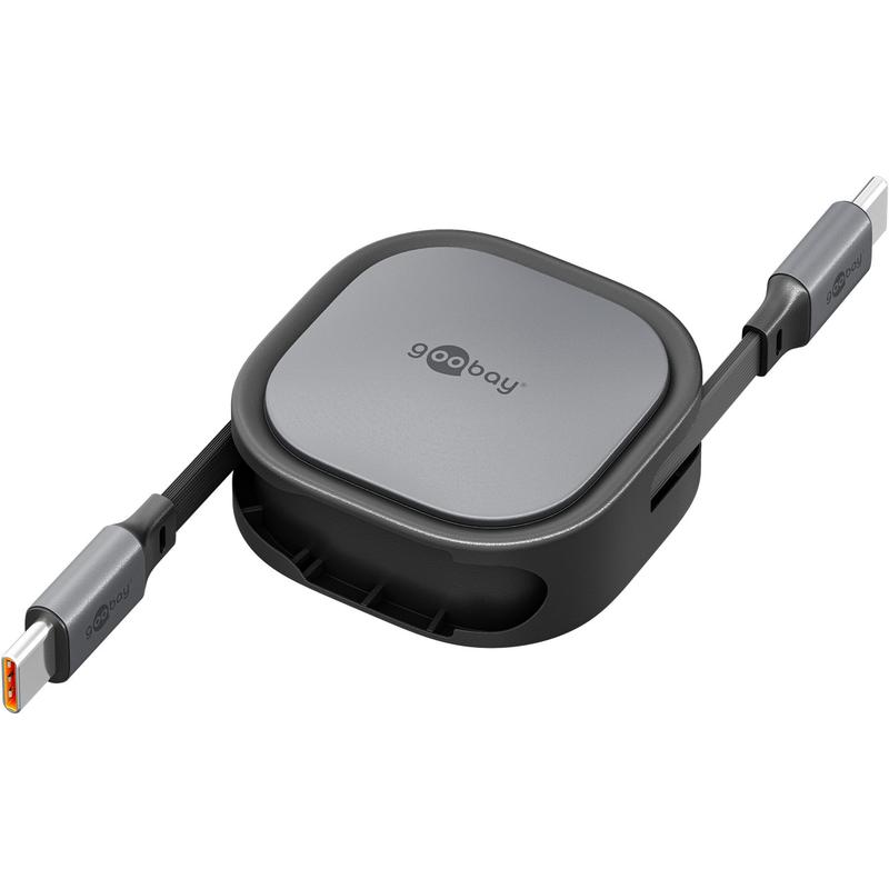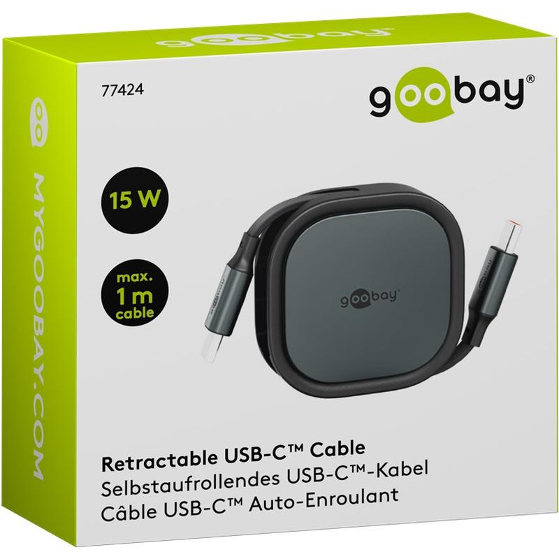 Goobay Câble USB-C rétractable - Câble de charge plat de 1m avec puissance de 15W et mécanisme de rétractation automatique.