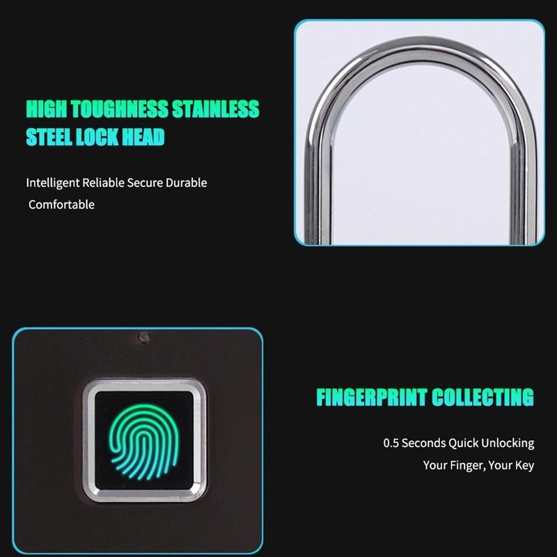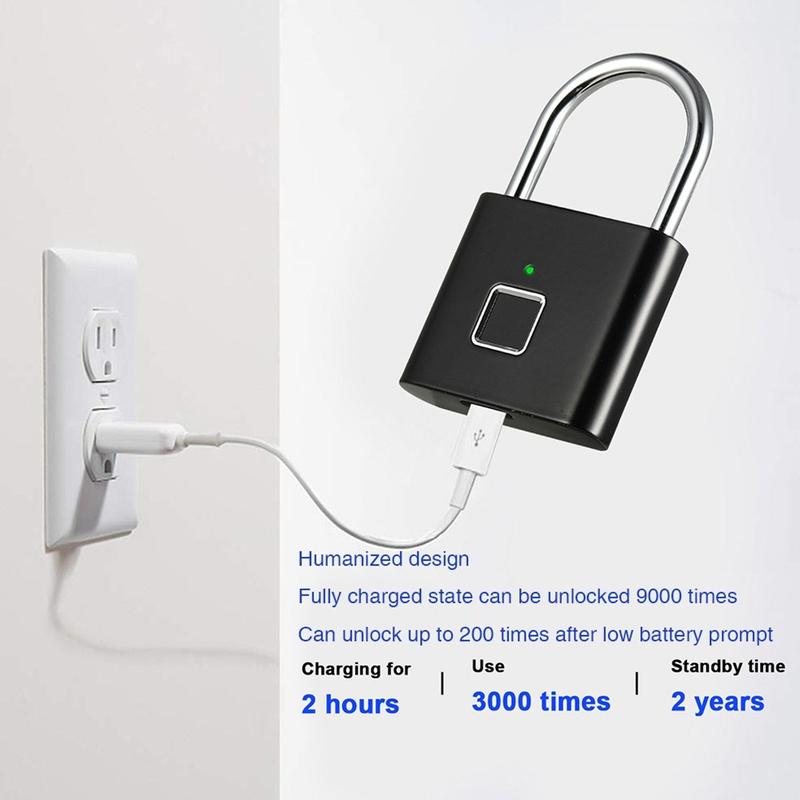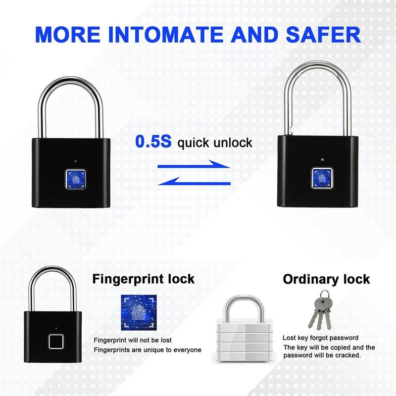 Assurez une meilleure sécurité à vos effets personnels grâce à ce cadenas intelligent à empreinte digitale, un système de verrouillage compact et sans clé conçu pour faciliter votre quotidien. Au lieu d'utiliser des clés ou des mots de passe, il se déverrouille grâce à votre empreinte digitale, ce qui en fait un choix pratique pour les armoires, les sacs à dos, les valises, les casiers de salle de sport et les boîtes de rangement.