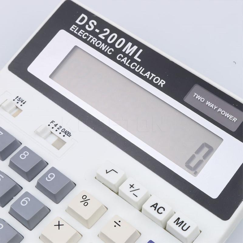 Calculatrice de bureau DS-200ML - Affichage LCD à 12 chiffres, double alimentation solaire et batterie, utilisation au bureau et à l'école